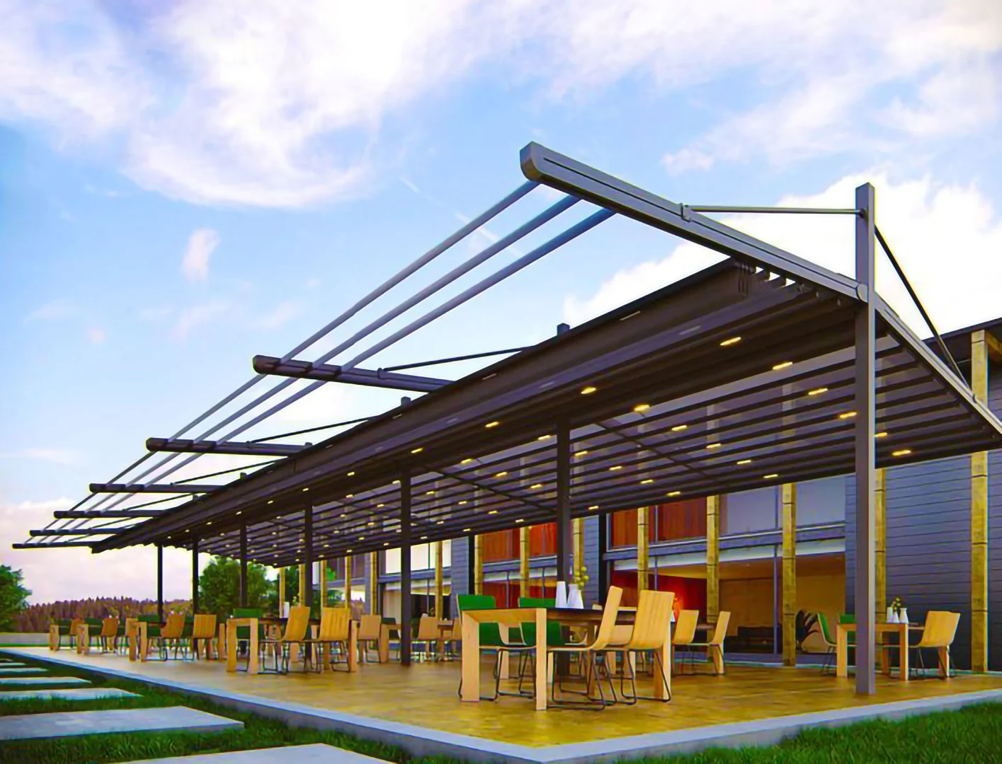 Pergola sistemleri , açık alanlarınızı dört mevsim konforla kullanım sağlar. Dayanıklı alüminyum yapısı, modern tasarımı ve otomatik tavanıyla her hava yapısına uyum sağlar.