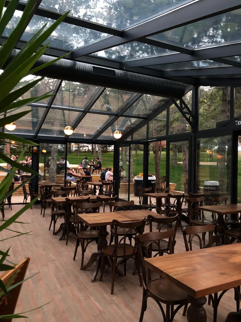 Yüksek sıcaklık sıcaklığıyla yazın serin, kışınsa sıcak kalır. Katlanır cam, sürgü veya açılır tavan gibi seçeneklerle kişisel olarak yapılabilir.