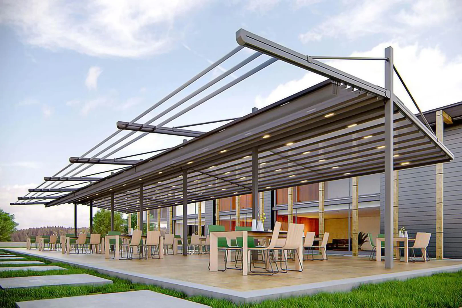 Pergola sistemleri , açık alanlarınızı dört mevsim konforla kullanım sağlar. Dayanıklı alüminyum yapısı, modern tasarımı ve otomatik tavanıyla her hava yapısına uyum sağlar.